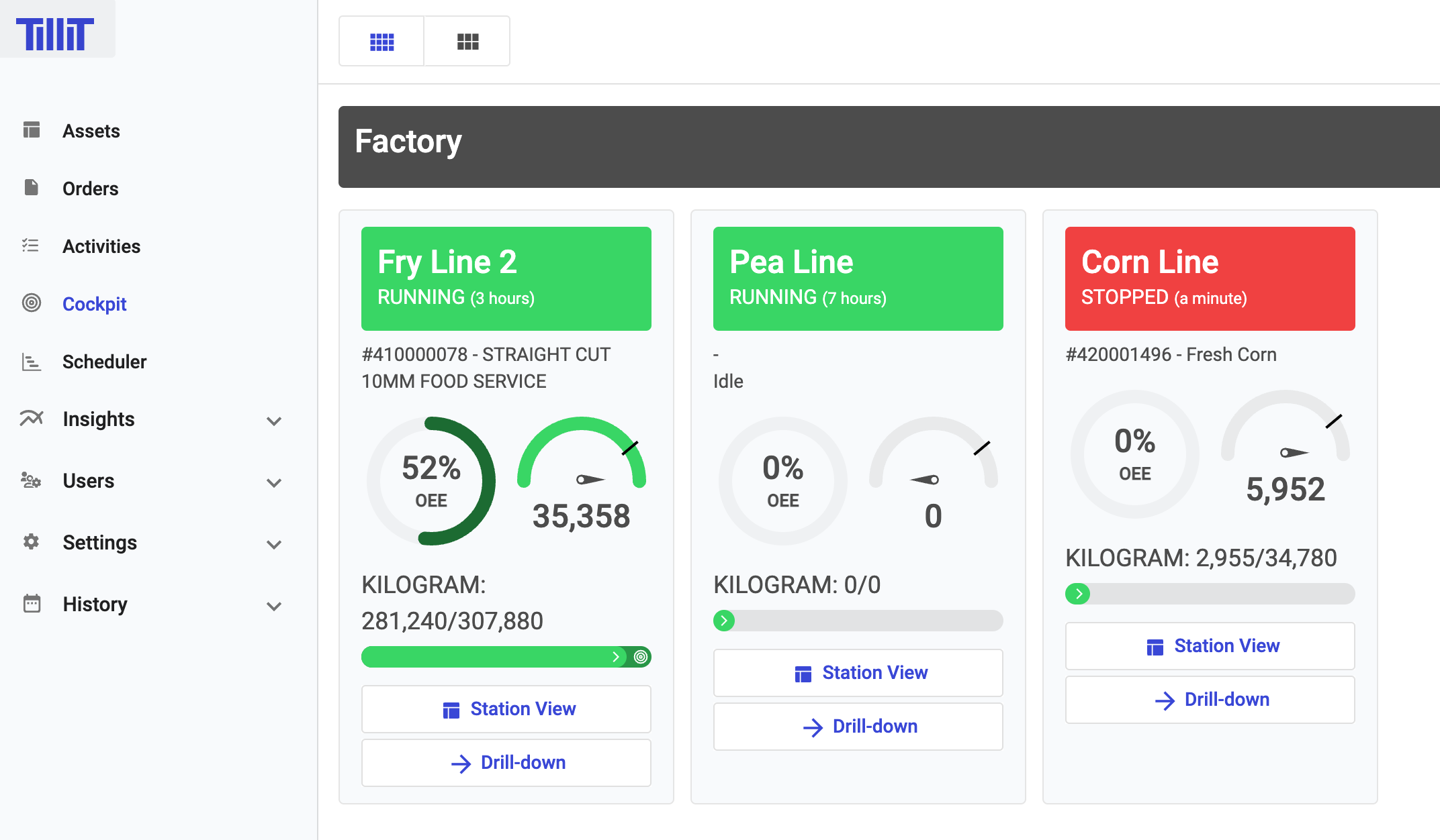Take a comprehensive look at the entire factory using our new cockpit view. You can drill down into each of your lines to view detailed information about the assets and orders.