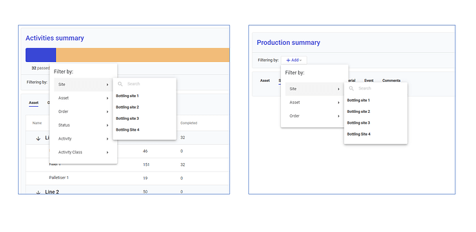 Production reports and Activity Summary reports now support filtering by site and by activity, giving you deeper insight into specific production activities and site performance.
