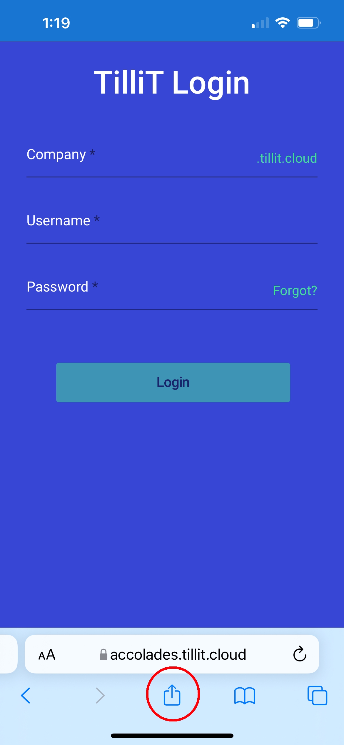 Navigate to https://<your company>.tillit.cloud/