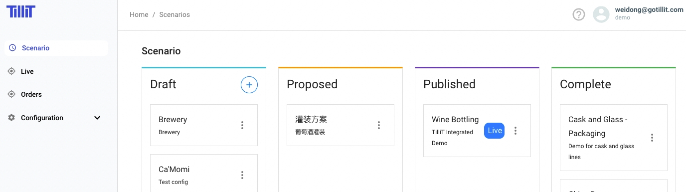 TilliT scheduler has a flexible concept called Scenarios. These are user-defined modelling environments where you can create, manage, update and coordinate a Schedule for internal and external communication purposes.