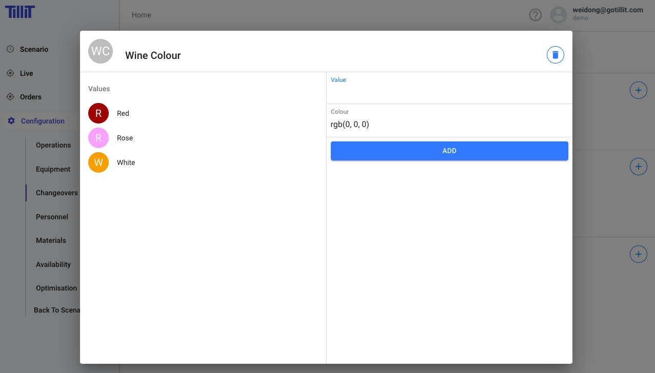 The colour will be used when scheduling to display different material and optimisation property attributes. See example below.