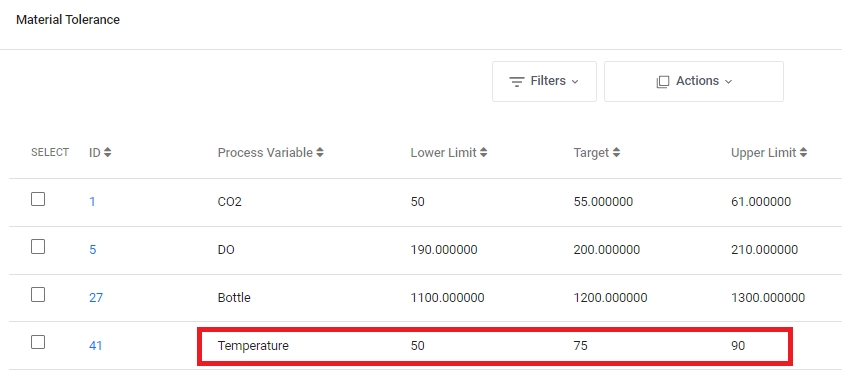 It is not required to have defined a tolerance on the process variable for Update Order Tolerance to work. In the above example, we have set it to a process variable that we have named temperature.