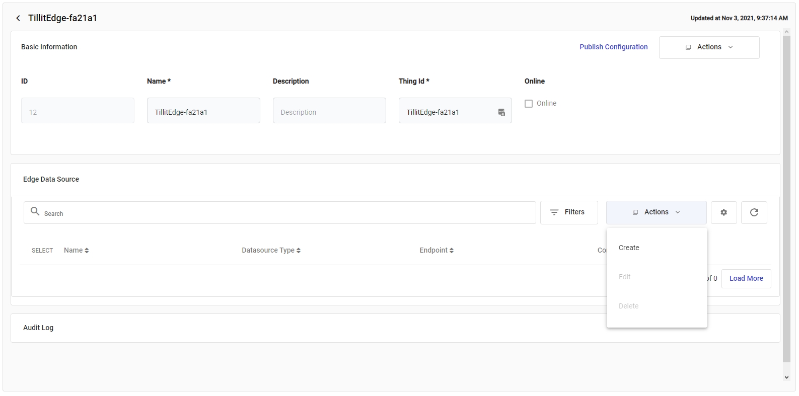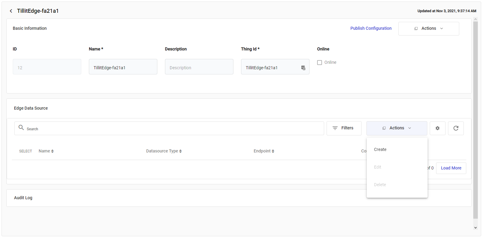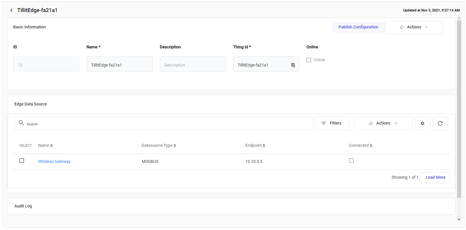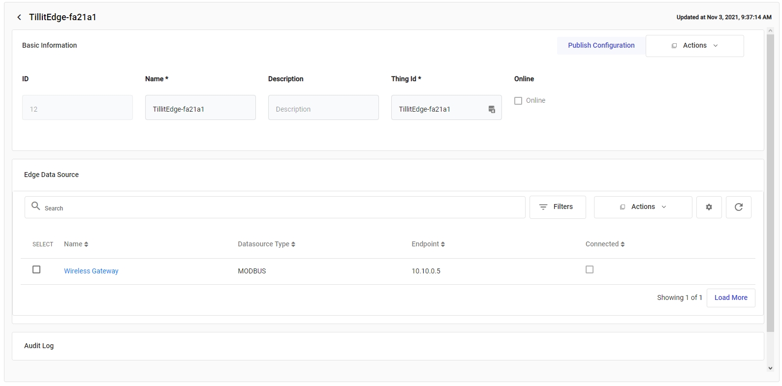 3. Click on save. The next thing to do is to update TilliT Edge with the new configuration by pressing the Publish Configuration button.