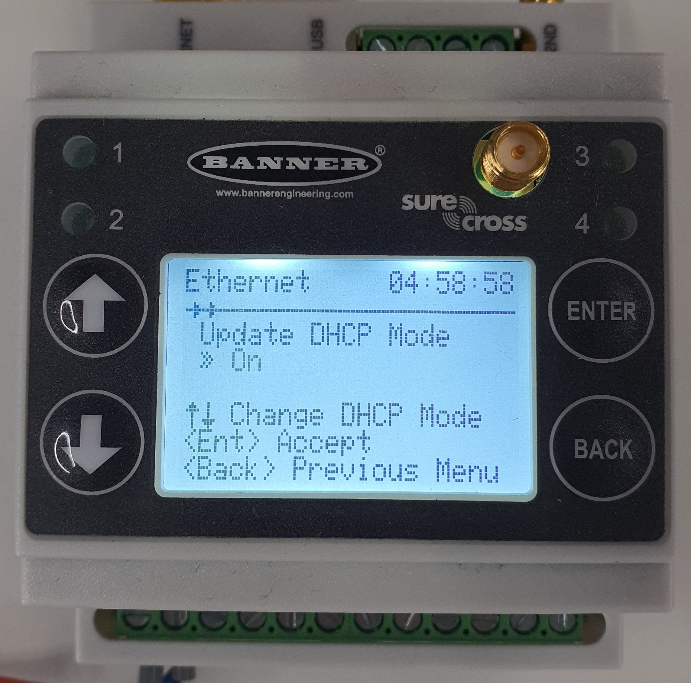 4. Return to the Ethernet sceen to check for the assigned IP of the device.