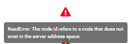 After publishing your configuration, the status will attempt to connect to your supplied datasources and read tag addresses. In the event that any of these fail, the edge will report back with an error of what went wrong. This error is displayed in the status column of the edge and is represented by a symbol representing: