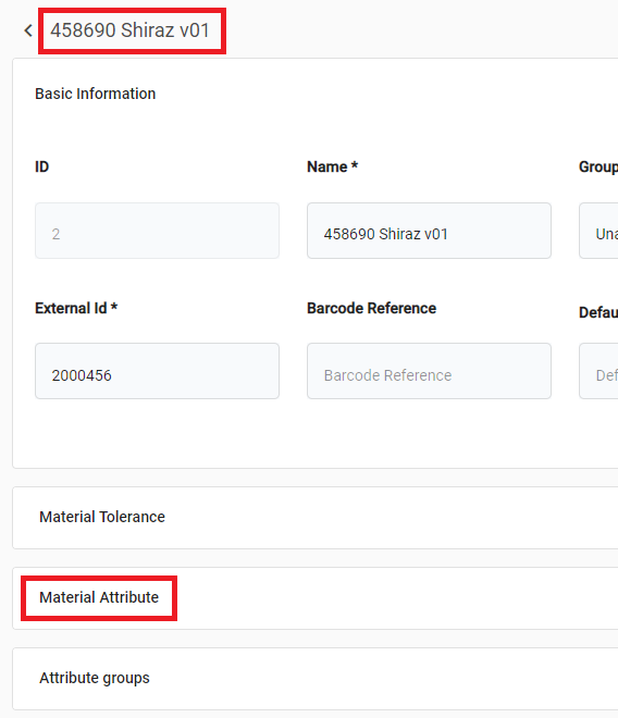Click on the material you wish to apply an attribute to. In this example, we're going to open 458690 Shiraz v01.