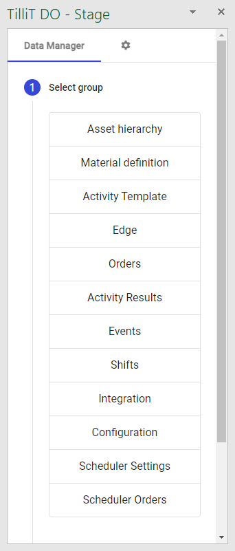 Depending on which environment you're accessing, click the TilliT DO Stage tab (Stage) or TilliT tab (Production), then click the Data button.