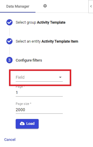 When you select once of the above Groups, you'll be asked to select an entity. To understand the various entities, you will need to understand the data you're accessing. This is best done by reading through the various articles in Setting up TilliT.For this following example, we'll use one of the most commonly used groups, Activity Template, and click on the Activity Template Item entity.