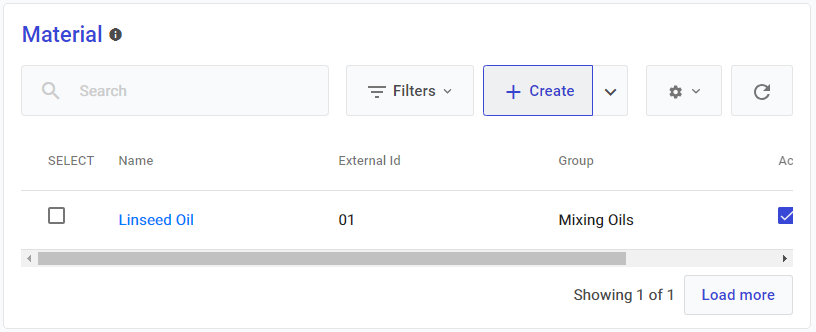 **Go to Settings > Material Definition > Materials -> Create**