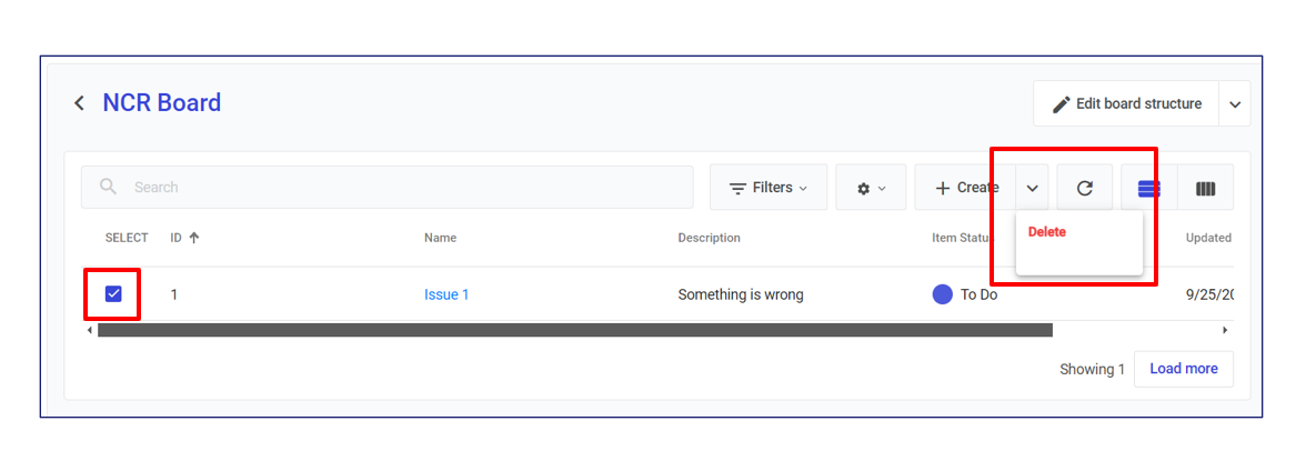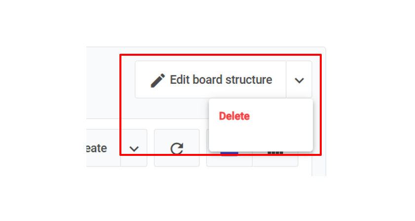 Click on the **arrow next to Edit board structure** and choose **Delete** in the dropdown to delete the board.