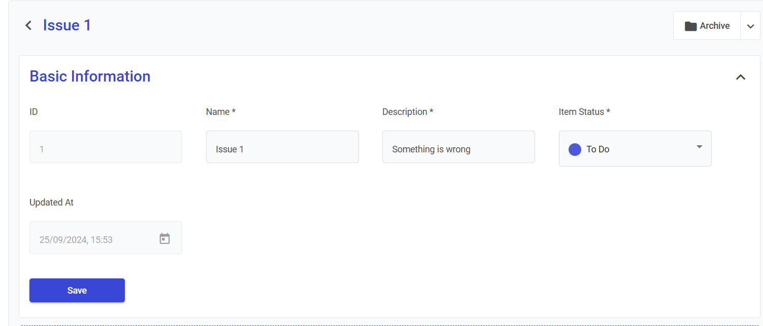 * **Misalignment Issue:** Add a record for a misalignment issue reported by a user and set the status to "To Do."