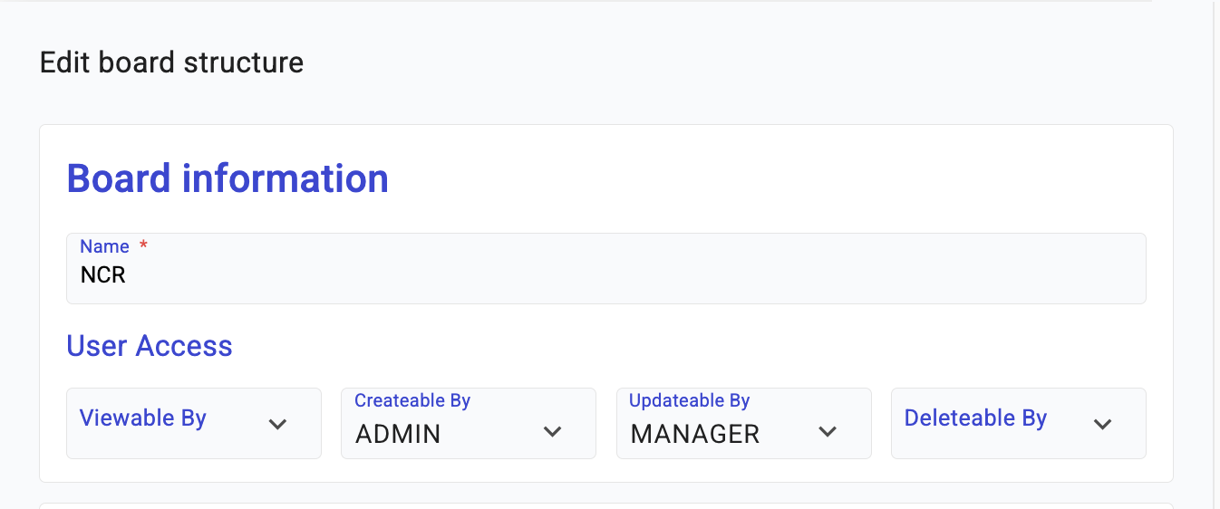 2. Locate the ***User Access*** field in the board settings.