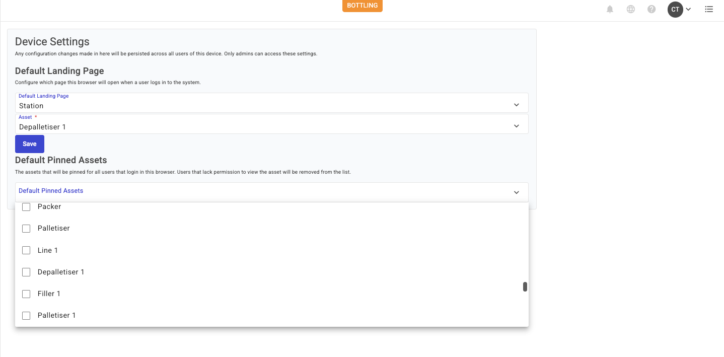 * Any configuration changes made in here will be persisted across all users of **this device.** Only admins can access these settings.