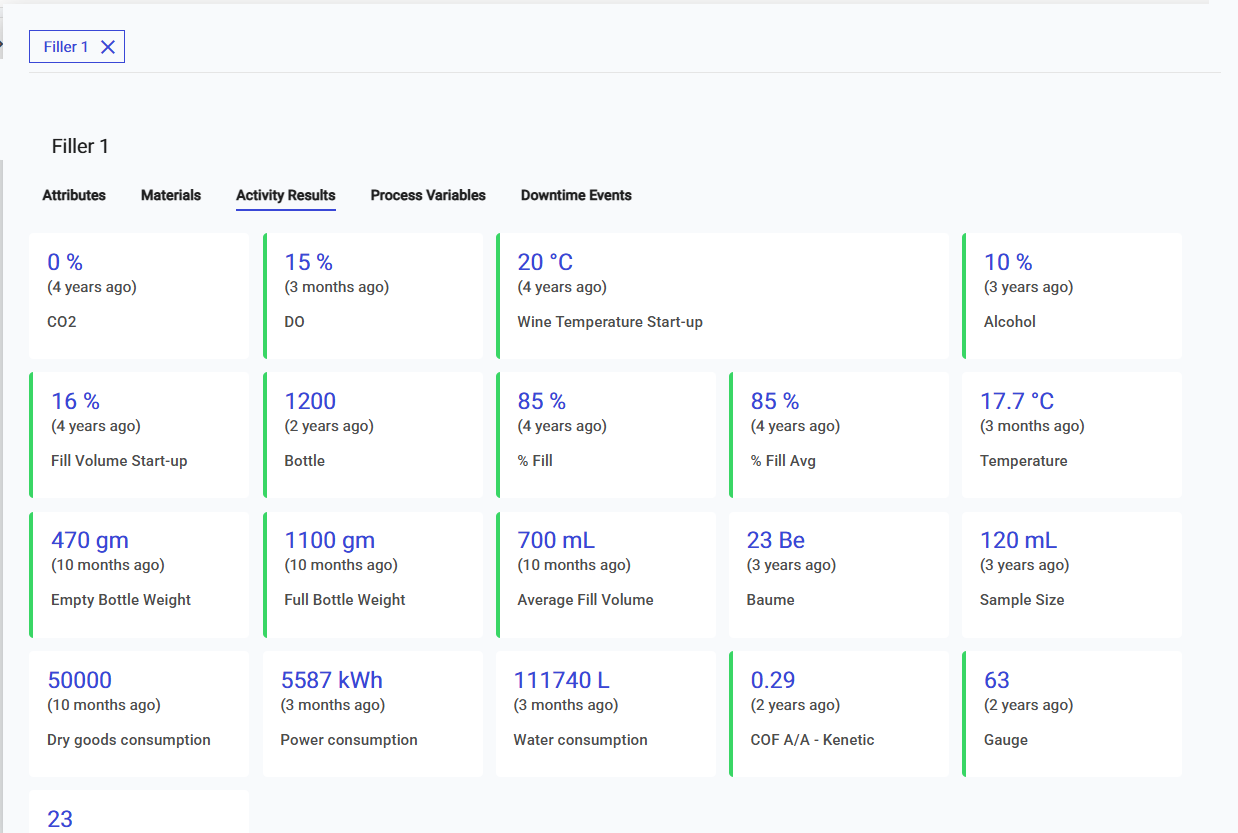 * **Activity Results -** of activities done on the asset