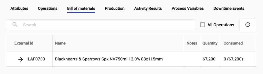 * **Bill of Materials** - associated with producing this order