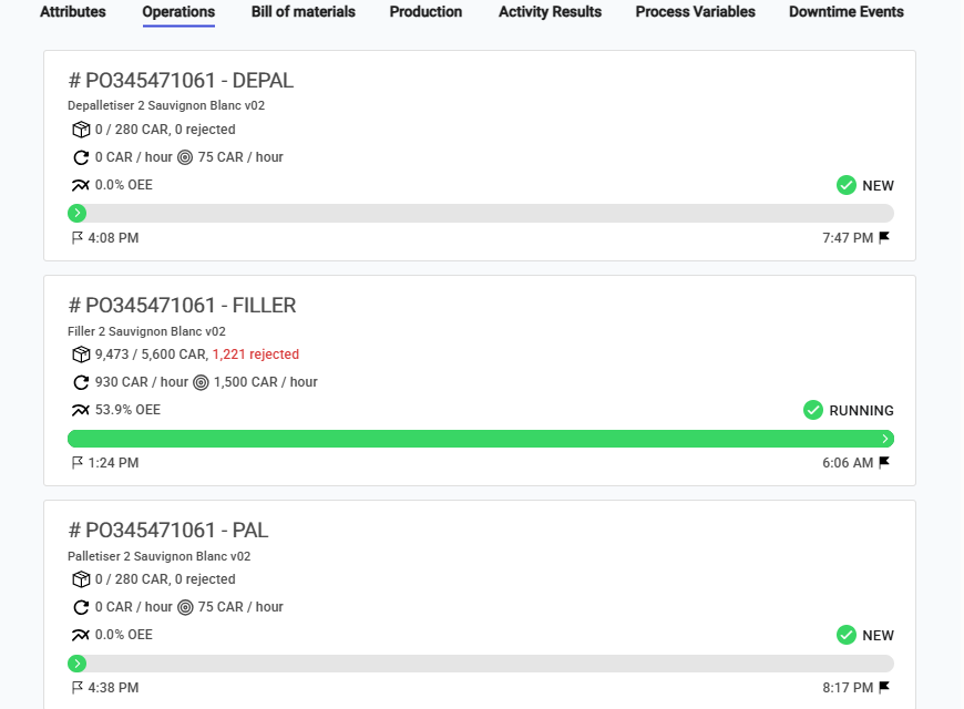 * **Downtime events** - occured while producing the order