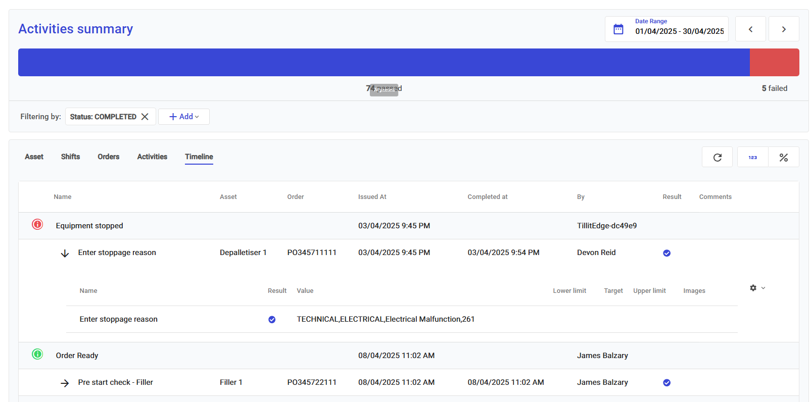 Each activity includes detailed information, such as who completed each step—providing clear accountability and traceability.