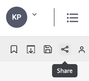 In the top right hand corner, click the Share icon, as shown below. Note: If you do not see the Share option, you are not the owner of this dashboard and cannot share.