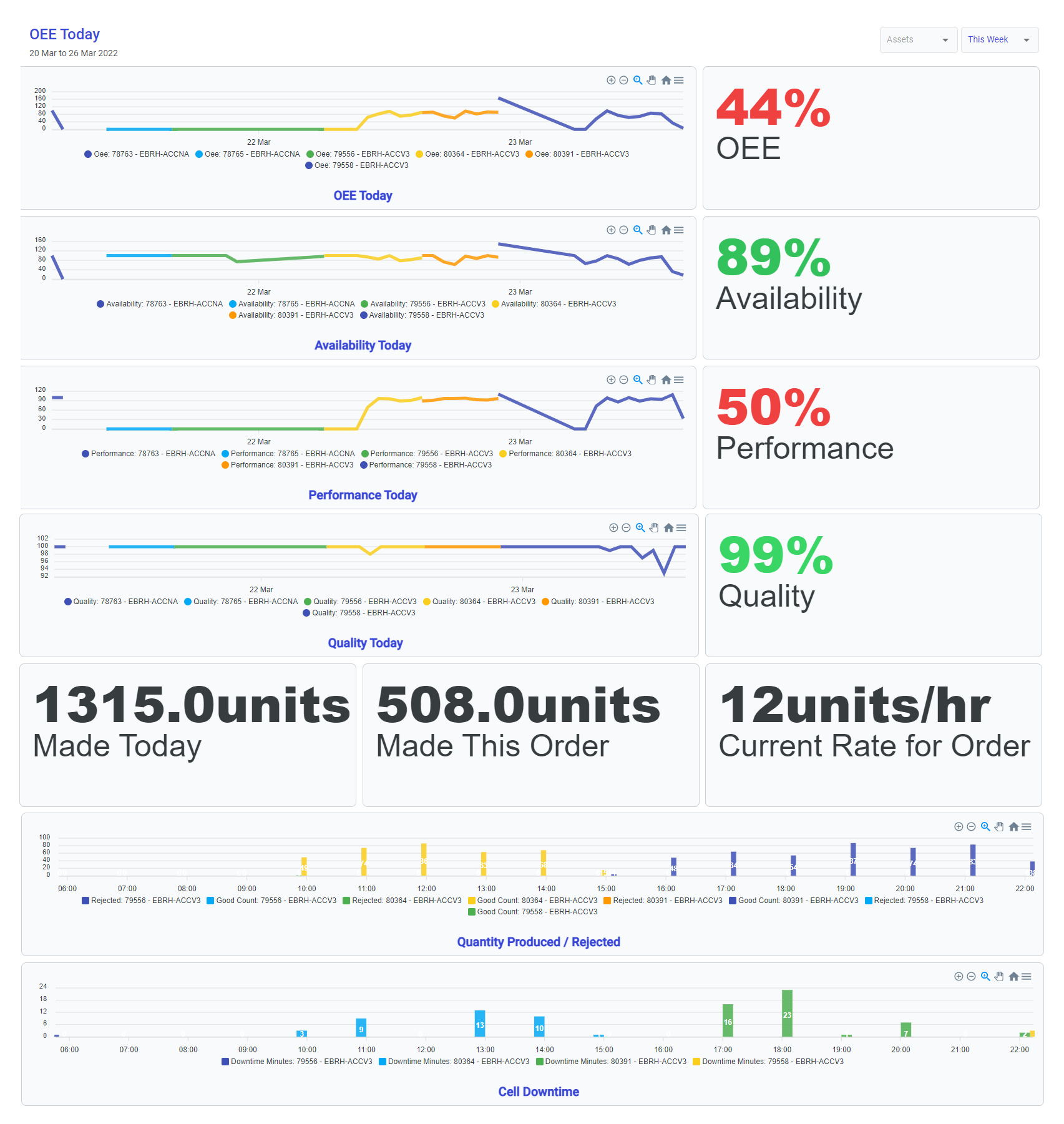 Production - information such as quality, performance, availability, stoppage, run rates, order/stoppage durations, oee.