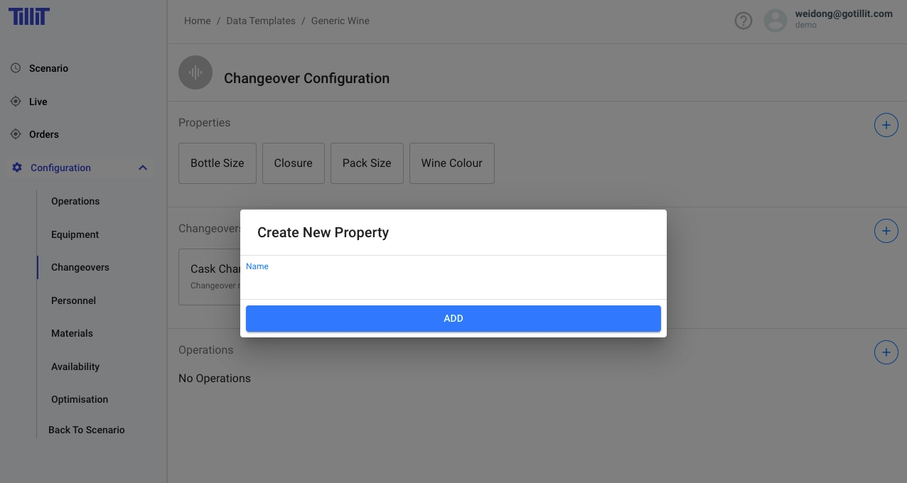 1. Create a New Property - the Changeover section. Property must match a Material or Order Property Name