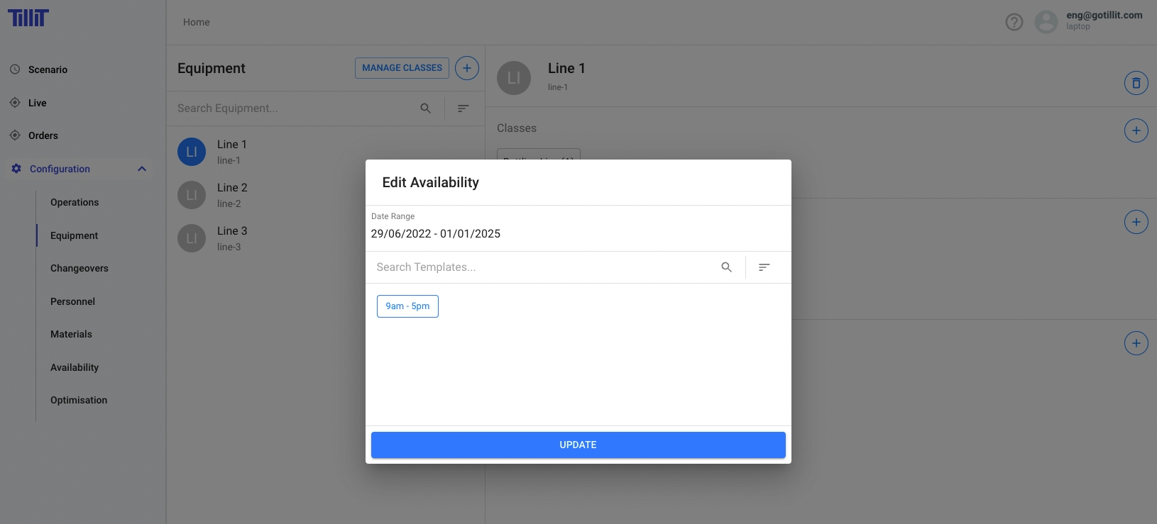 When applying an Availability to an Equipment, you need to provide a date range for that shift. A resource can have different shifts at different times, requiring the need to "calendarise" the Availabilities over time.
