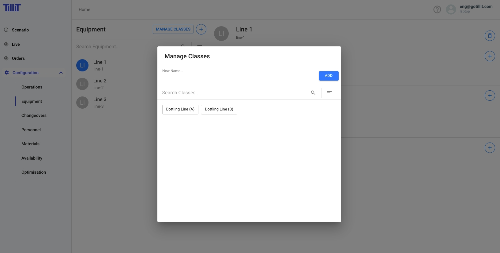 To create and update Equipment Classes, click on the Manage Classes icon and Add, Update or Delete: