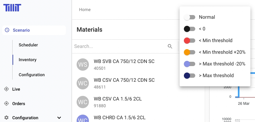 The AI Scheduler has functionality to manage Material Inventory based on the Scheduled production orders.