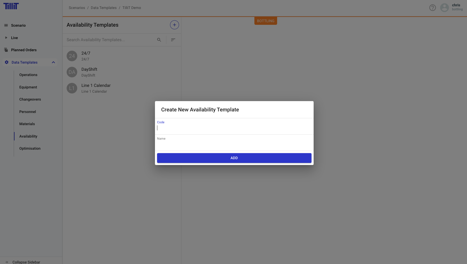 To Create an Availability template, click on the Plus icon and enter the Code and Description: