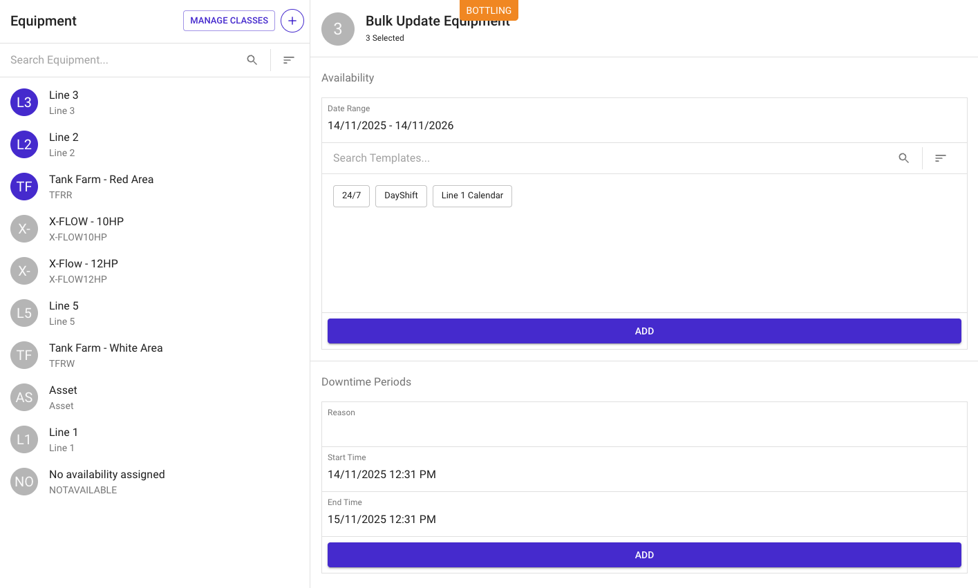 Hold Ctrl or Cmd and then individually click on the Equipment that you want to bulk update the availability.