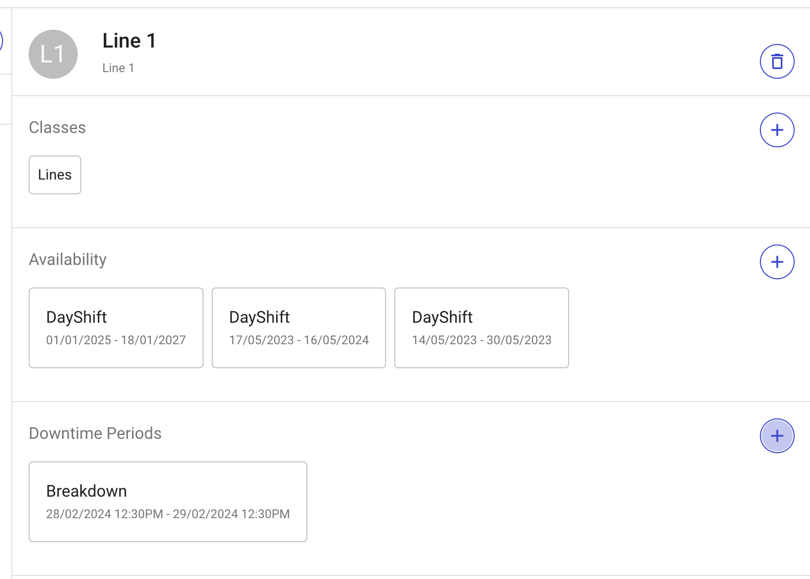 Equipment will also likely have Planned Maintenance or Downtimes associated that need to be created to ensure the system does not Schedule Production on that resource while it is out of action.