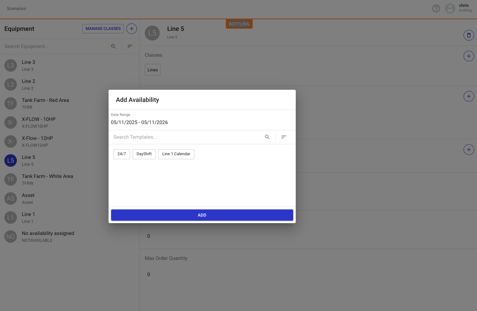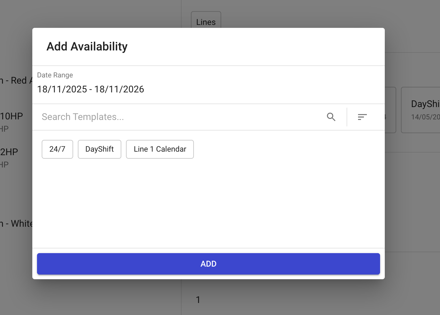You can also apply Availability Templates to a piece of equipment to give it an Availability or Shift: