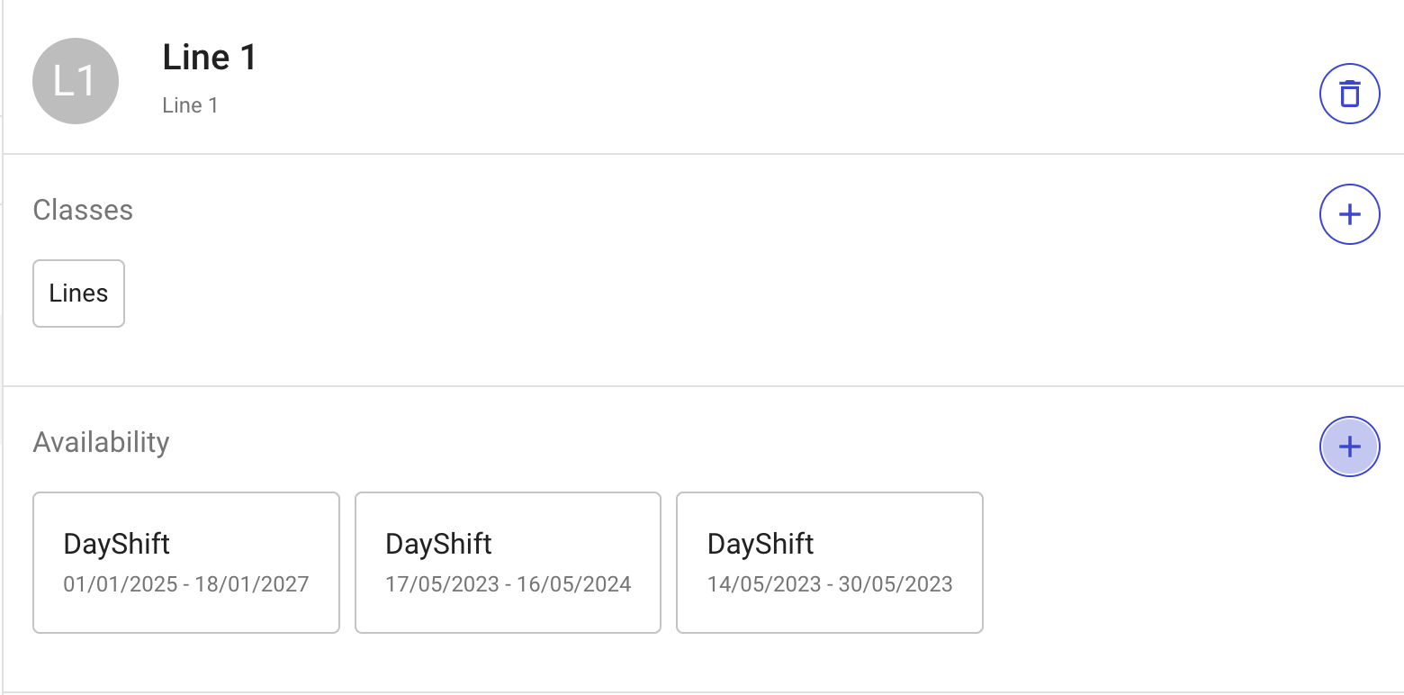 When applying an Availability to an Equipment, you need to provide a date range for that shift. A resource can have different shifts at different times, requiring the need to "calendarise" the Availabilities over time.