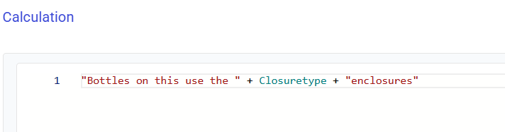 In our example, Closure Type has a value of "Cork", so the result of our calculation above becomes: