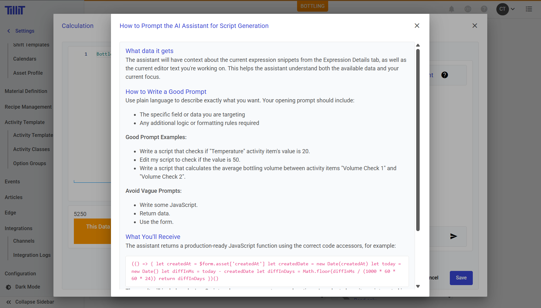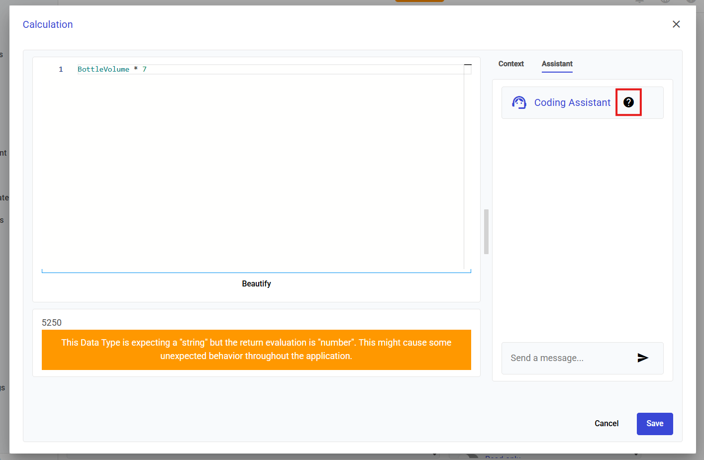Our assistant is an AI Assistant chatbot that helps you write expressions and calculations more efficiently. It understands the context of your current snippets to provide smarter suggestions.