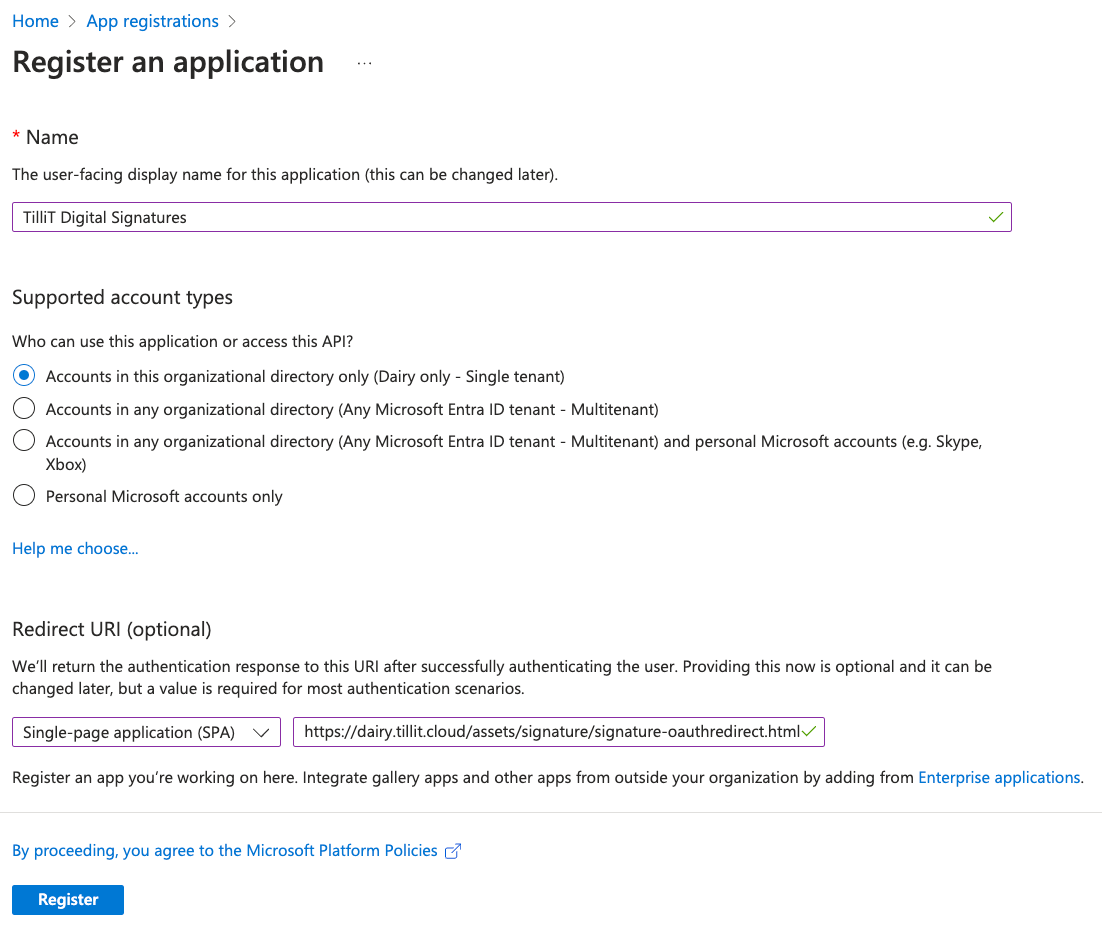 To enable secure digital signatures, follow these steps in Azure Entra: