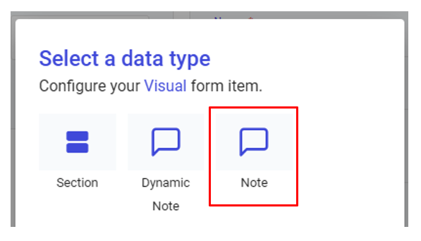 This data type is accessible through the **Visual** item type and then choose **Note.**