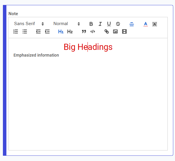 When chosen, the item type will **open a rich-text editor** that allows you to easily edit text, add headings, colours and more without having to do calculations or HTML like Dynamic Note.