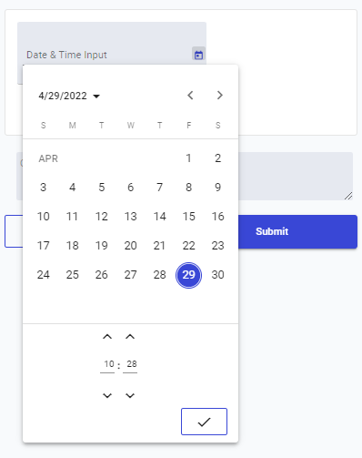 Provides a date/time picker to enter a specific date and time.