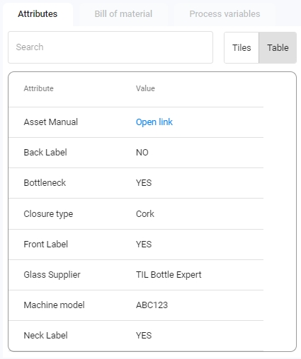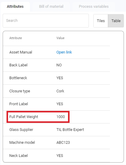 That means if another order uses the same asset or material, it will be affected by this change. For example, if you changed the Closure type material attribute in the screenshot above, and another line was also producing this material, both lines would be affected, as well as any other subsequent orders that use said material.