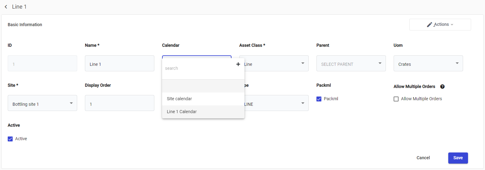 Click on the Name of the asset you wish to add a Calendar to, then click on the Calendar drop-down: