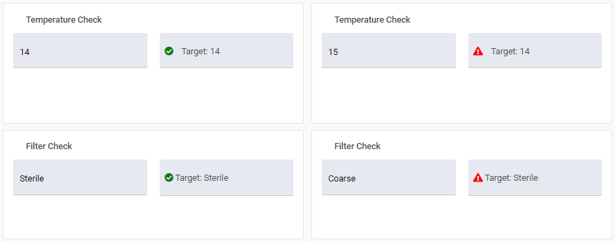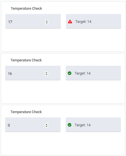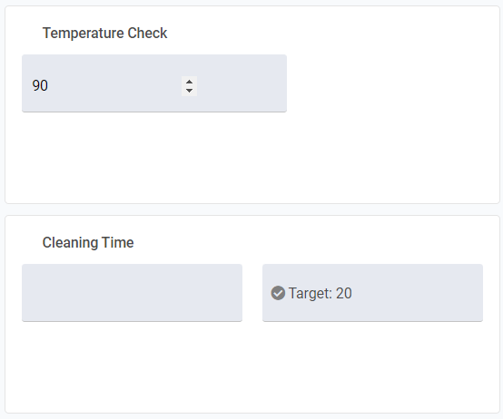 In the example, having a temperature below 85°C means that cleaning time should take 30 minutes (10 minutes longer than standard). If they enter that they took less than 30 minutes, the activity will now fail.