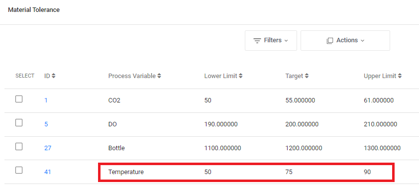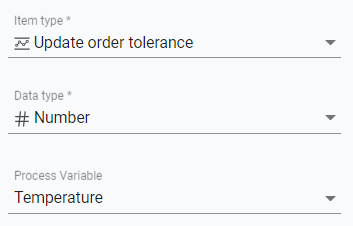 It is not required to have defined a tolerance on the process variable for Update Order Tolerance to work. In the above example, we have set it to a process variable that we have named temperature.