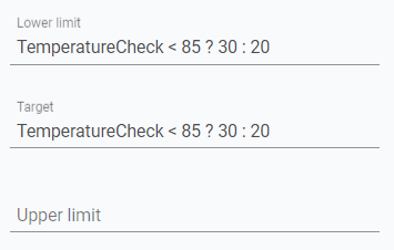 If you do decide to set both an Upper Limit and Lower Limit, then this defines the range in which the value can operate. Once these are set, the value must be numerical.In the above example, 15°C doesn't match the target precisely, so will fail. If we add an Lower Limit of 12, and an Upper Limit of 16, then 15°C would pass:
