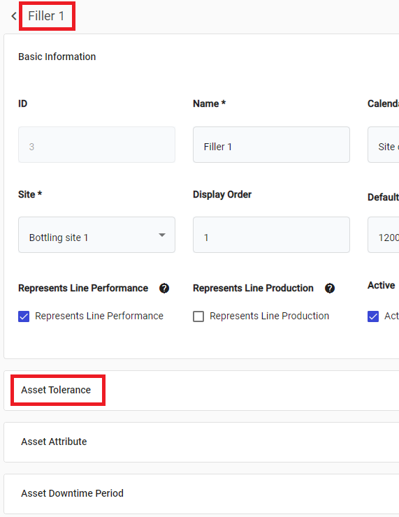 Next, click on the Asset you want to apply a tolerance. In this case, Filler 1. This will open Filler 1's configuration. We need the Asset Tolerance tab: