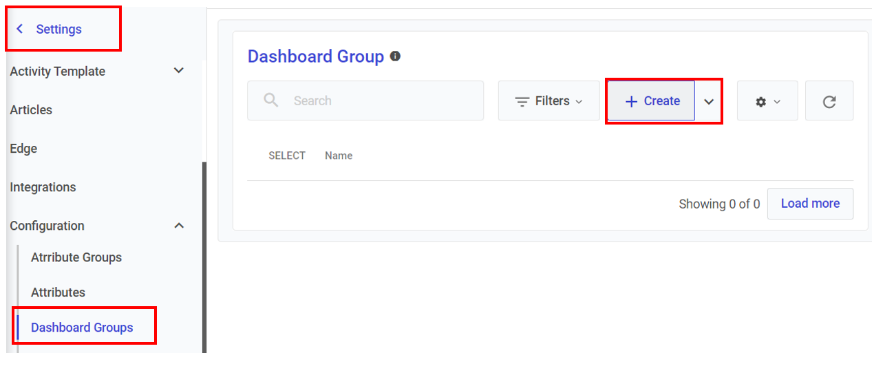 Settings > Configuration > Dashboard Groups > Create