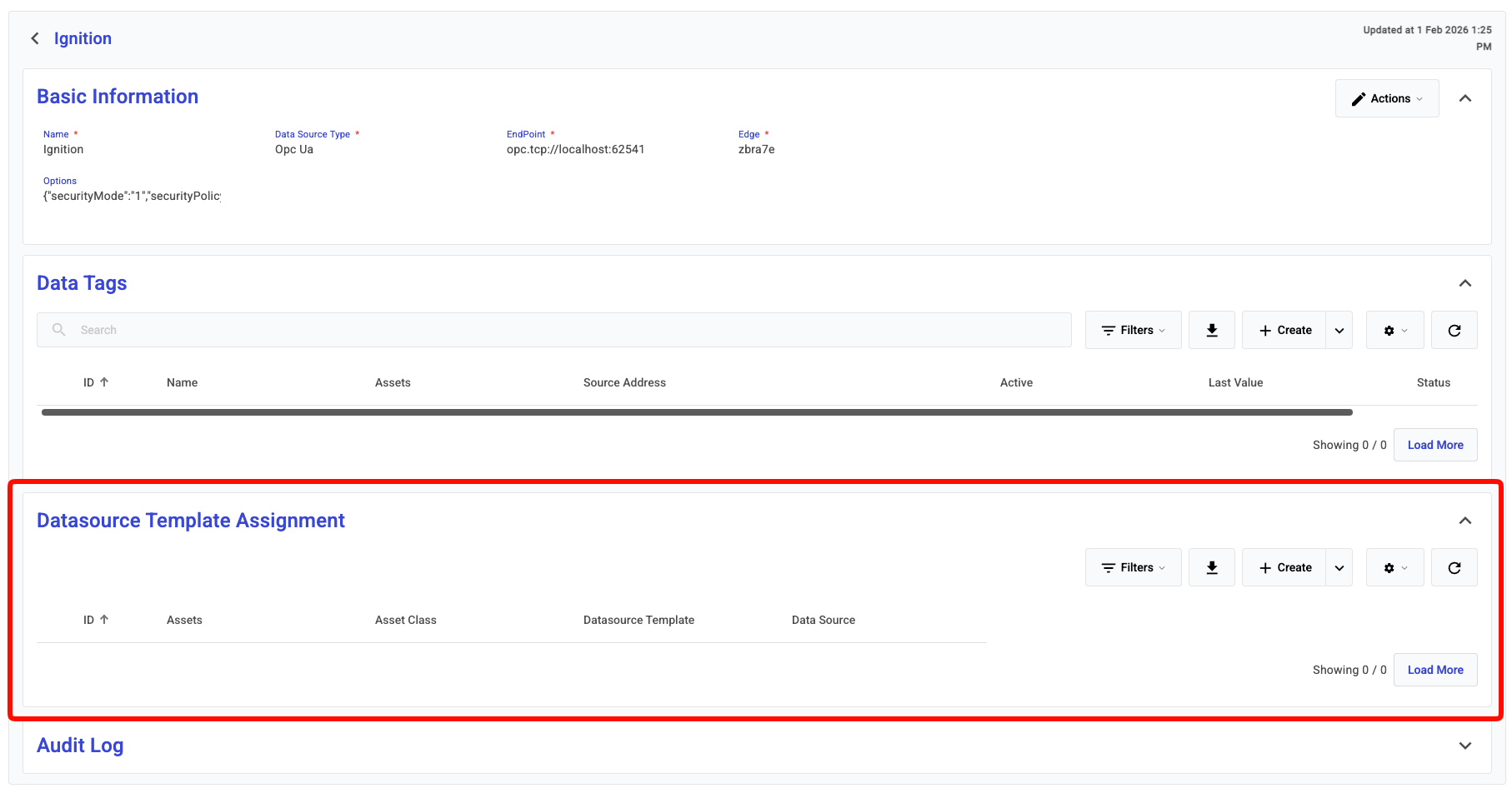 With the templates all set up, we can now assign the template to an Asset & Datasource. Navigate to the desired Edge & Datasource