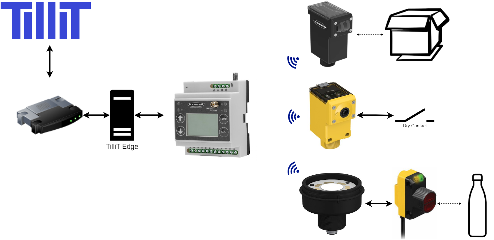In the scenario that you do not know much about the data the PLC or SCADA contains, then consider utilising our wireless sensors that are able to generate counts independant of you current machines. Choose from either a bottle counter, box counter, dry contact or PNP/NPN sensor. These wireless sensors communicate to a wireless gateway, from which the TilliT Edge will connect via MODBUS TCP over ethernet to read the current counts. A single wireless gateway can support up to 48 wireless part counters which are paired manually
