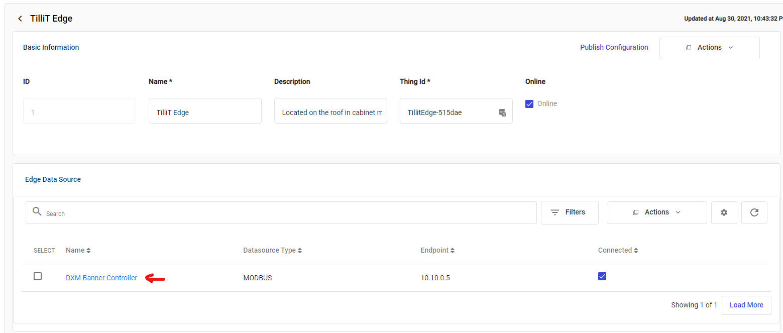 Click the Publish Configuration button to update the TilliT Edge