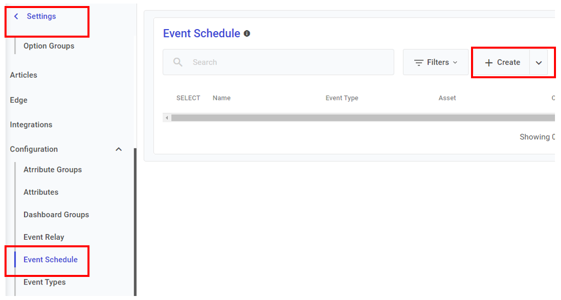 Navigation: **Settings > Configuration > Event Schedule > Create**