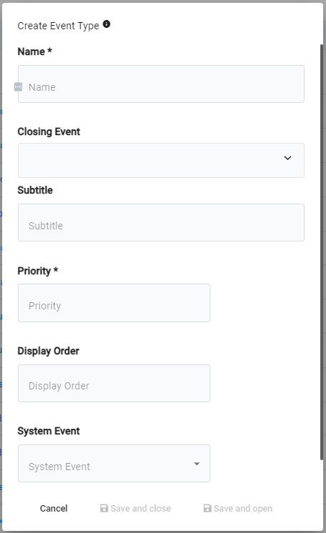 | **Display Order** | the order in which the event is shown throughout the UI |